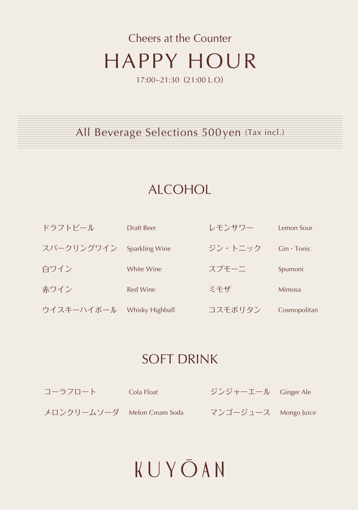 ディナー 17:00~21:30(L.O.20:30)